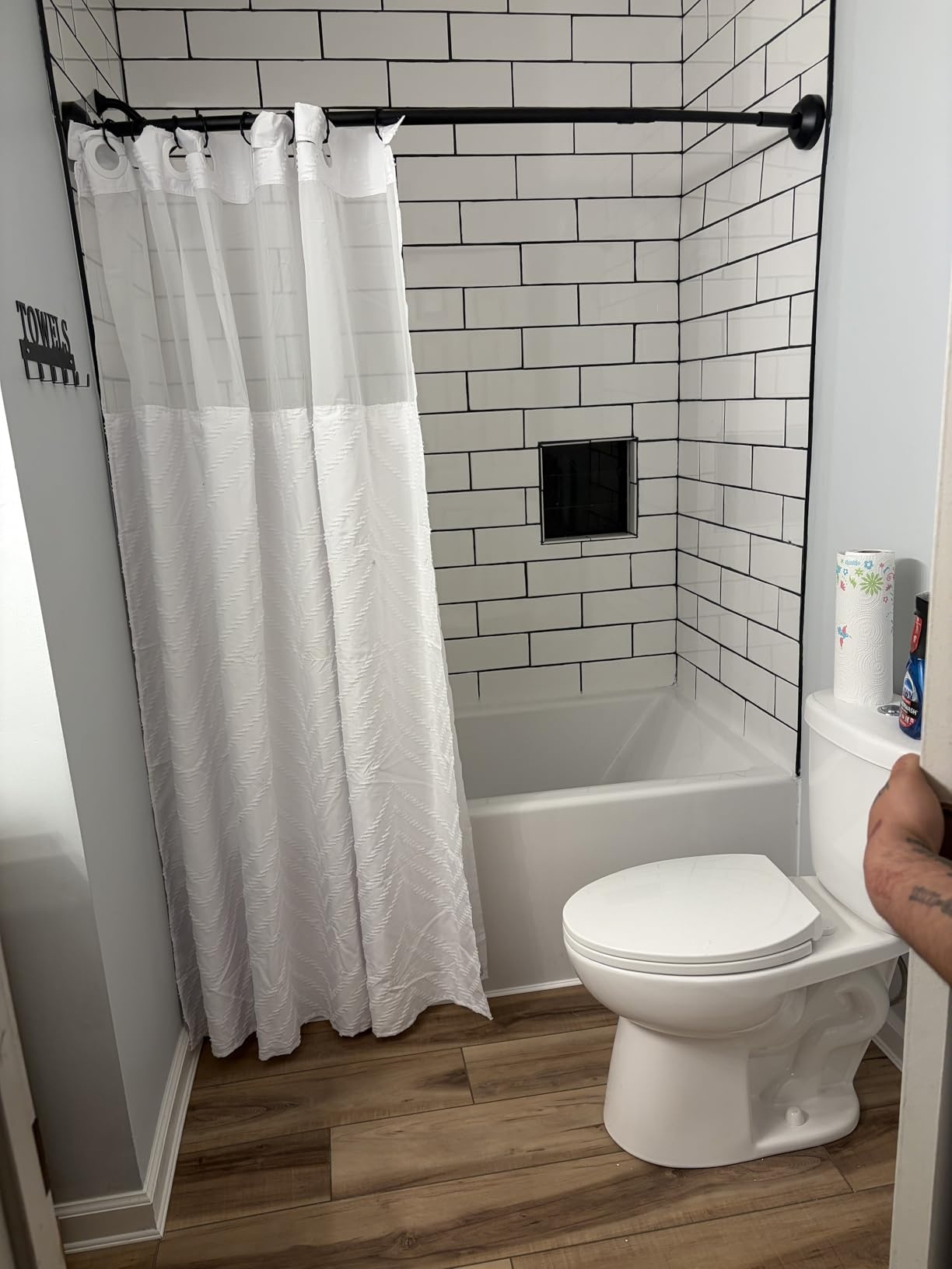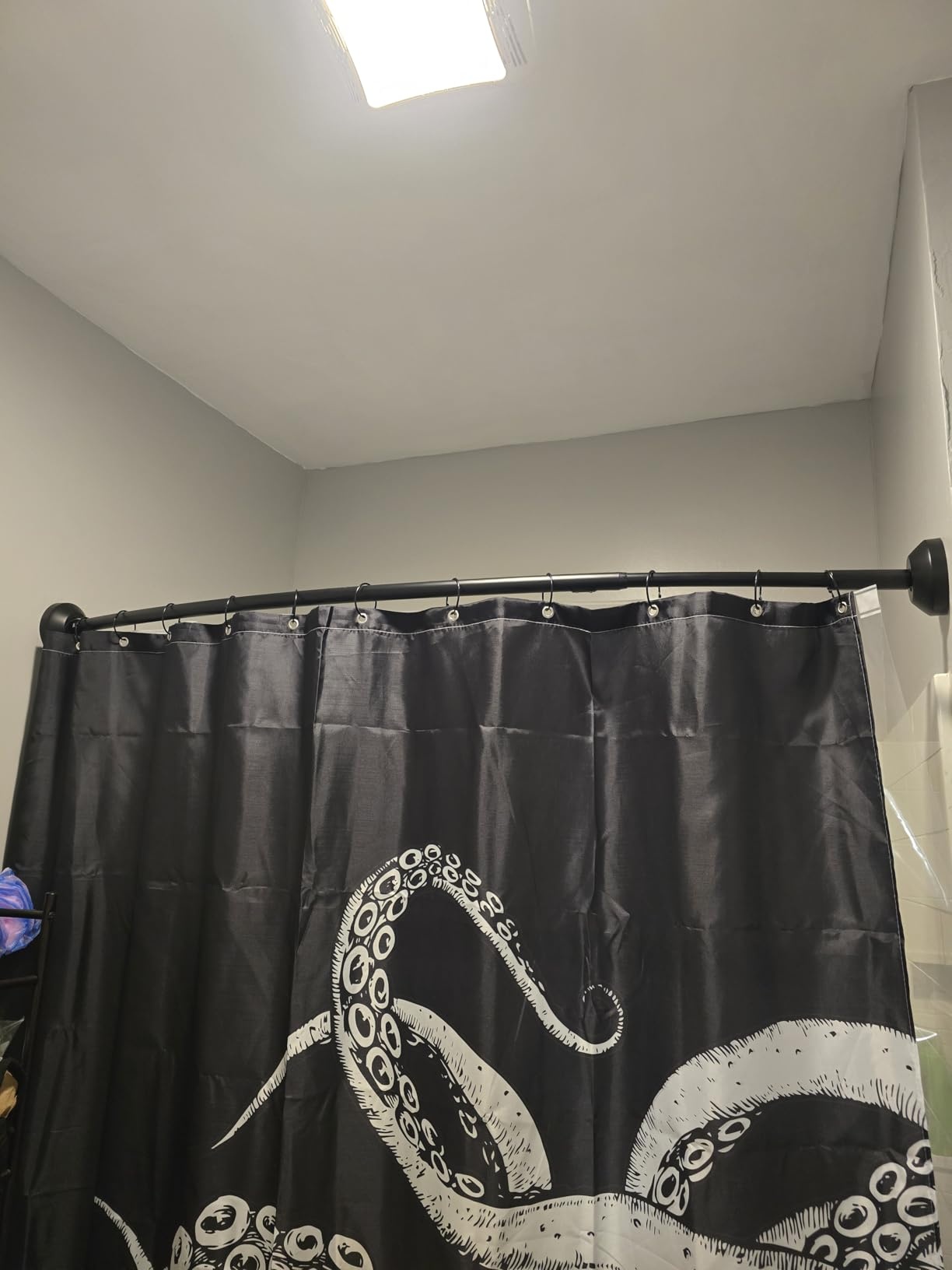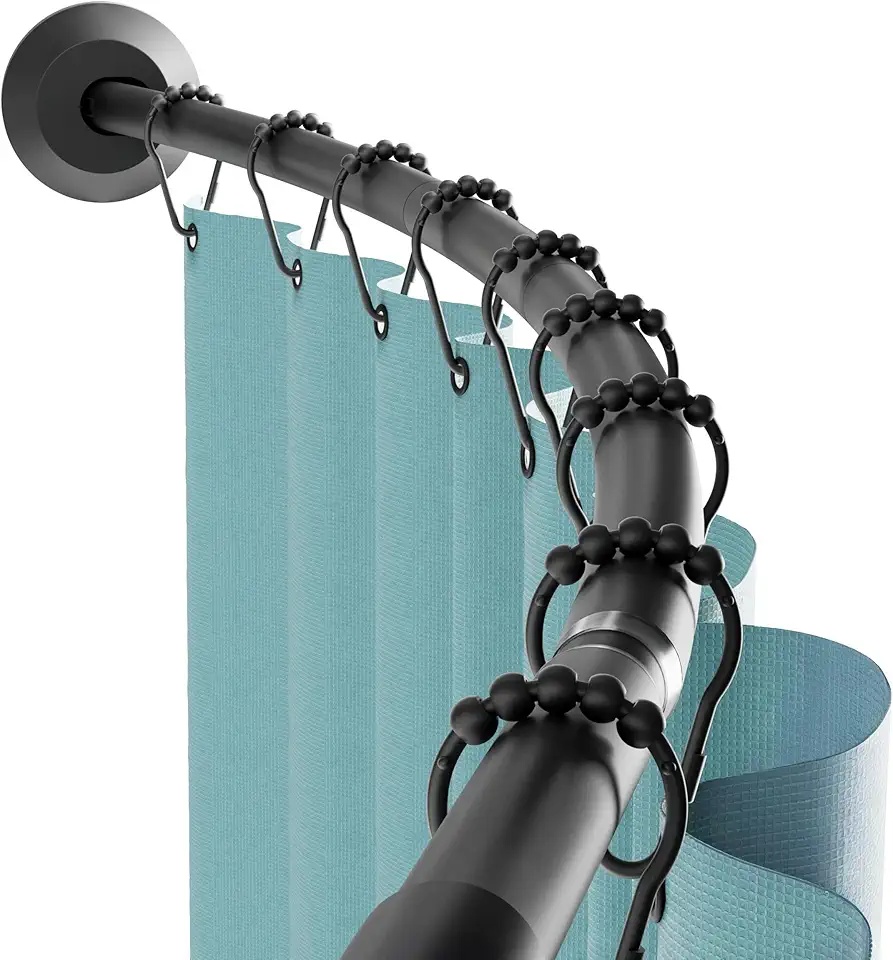 Adjustable rustproof curved rod with tension mounting – no drill needed. Fits various shower widths; curved design adds elbow room. Rust-resistant for humid environments. Simple setup and secure hold – ideal for updating showers without permanent changes.